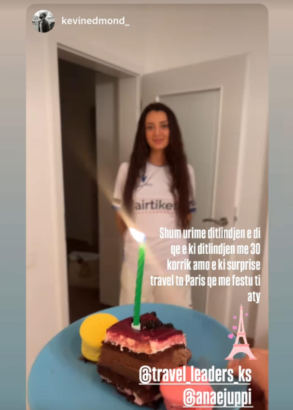 “Shumë urime ditlindjen e di qe e ki ditlindjen më 30 korrik ama e ki surprizë me udhetue në Paris që me festu ti aty”, shkroi krahas përshkrimit.