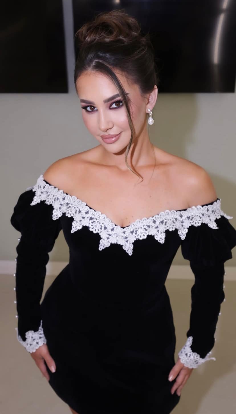 E veshur në një fustan të zi dhe flokët të mbledhura ka bërë që të duket mjaftë elegante.