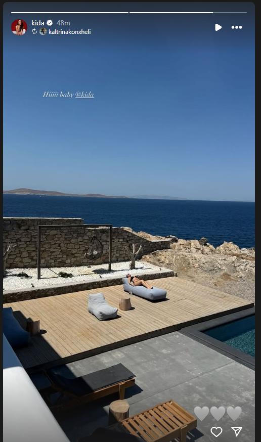 Në Instastory, mikja e saj ia ka publikuar një foto ku shihet duke marrë rreze dielli.