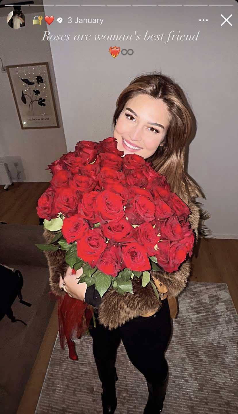 Disa muaj më parë, ajo kishte treguar se lulet janë një nga dhuratat që e bëjnë më të lumtur. Dhe si për ta përmbushur këtë dëshirë, Mirlindi i ka dhuruar dhjetëra trëndafila të kuq, një gjest romantik që nuk ka kaluar pa u vënë re nga ndjekësit.