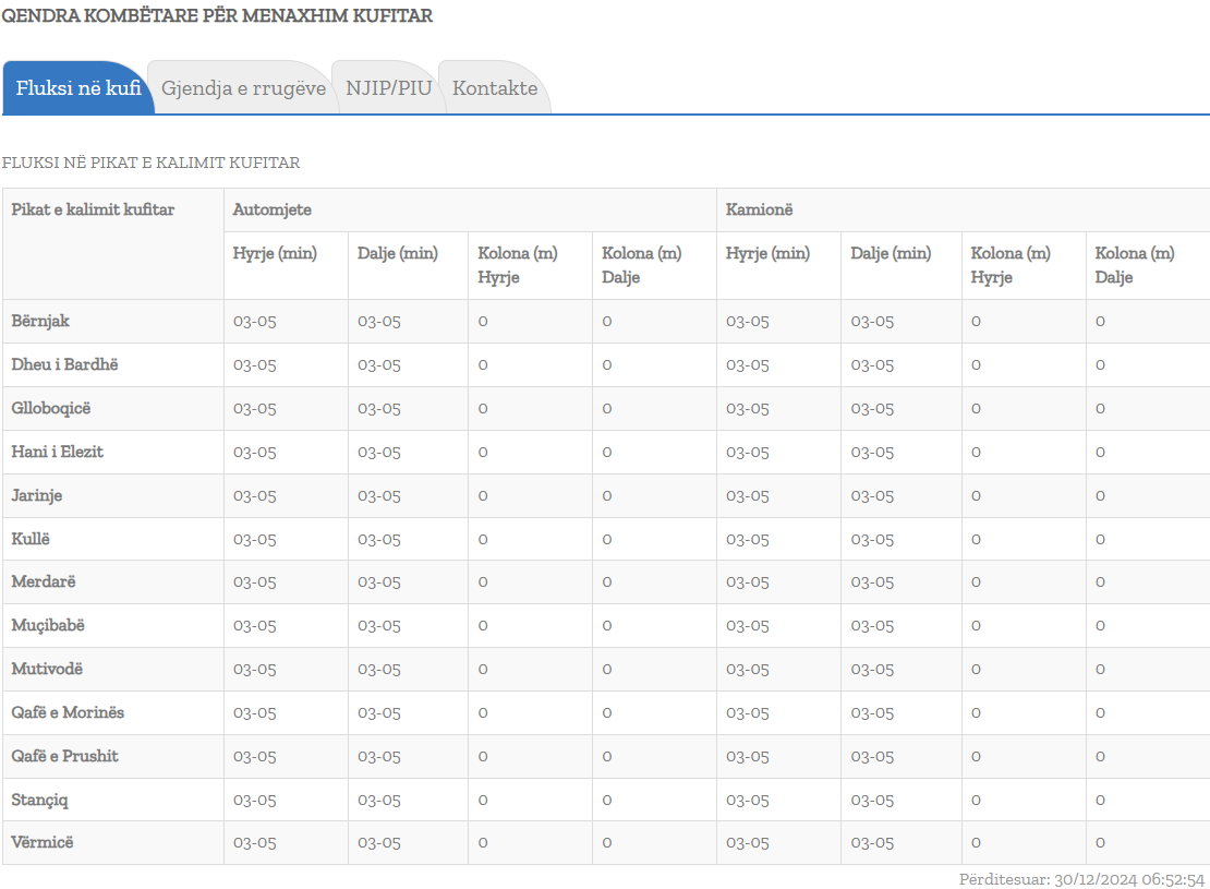 Qendra Kombëtare për Menaxhim Kufitar ka përditësuar të dhënat mbi fluksin në kufi.