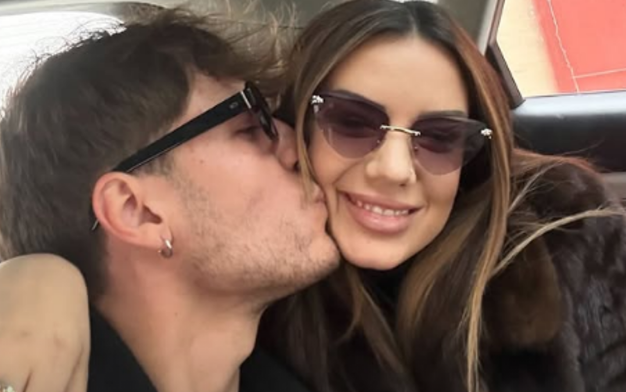 Në njërën shfaqen të buzëqeshur ndërsa në fotografinë e dytë shihet Klodi duke e puthur në faqe.