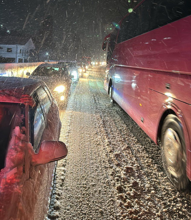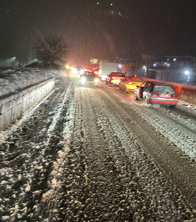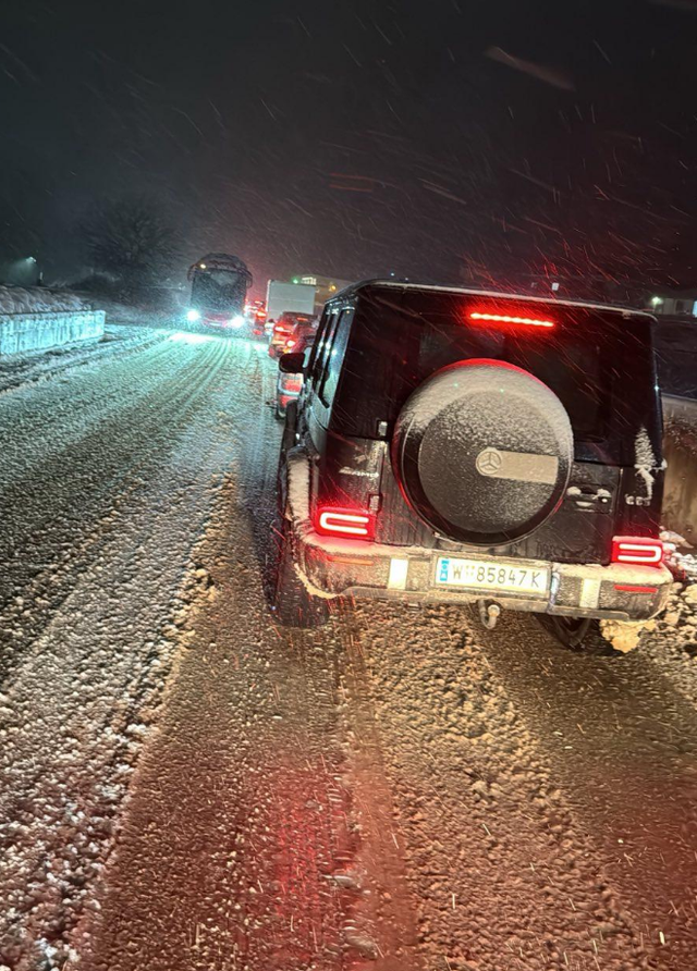 Prej disa orësh, makinat thuajse nuk lëvizin fare, teksa janë bllokuar në rrugën e mbuluar nga dëbora.