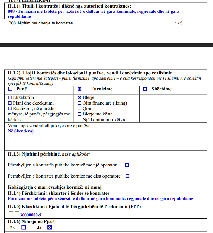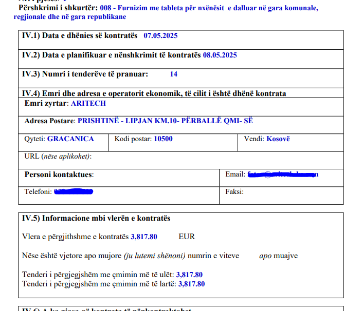 Në tenderin e publikuar nga E- prokurimi bëhet me dije se vlera e përgjithshme e kontratës është 3 mijë e 817 euro. /Indeksonline