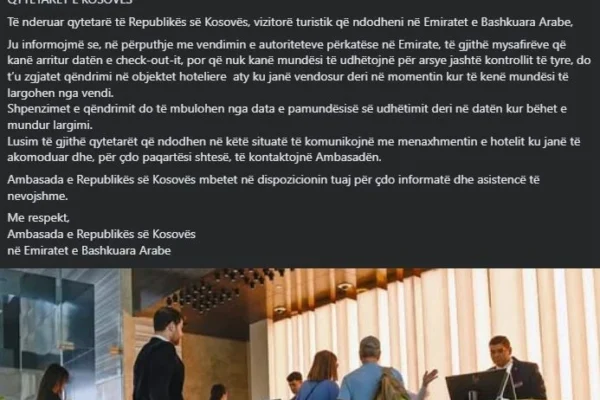 “I dënoj fuqimisht sulmet e regjimit iranian kundër bazave ushtarake amerikane dhe vendeve tona partnere në Lindjen e Mesme. Sulmet e sotme në zonat civile në Jerusalem, të cilat vranë të paktën 9 persona, si dhe sulmet pa dallim që synojnë zonat tregtare dhe banesore në Emiratet e Bashkuara Arabe, tregojnë një shpërfillje të pamatur për jetët e pafajshme dhe stabilitetin rajonal. Kosova qëndron fort me aleatët tanë amerikanë dhe partnerët tanë në rajon kundër veprimeve që kërcënojnë paqen, sigurinë dhe stabilitetin ndërkombëtar”, ka shkruar Konjufca në X.
