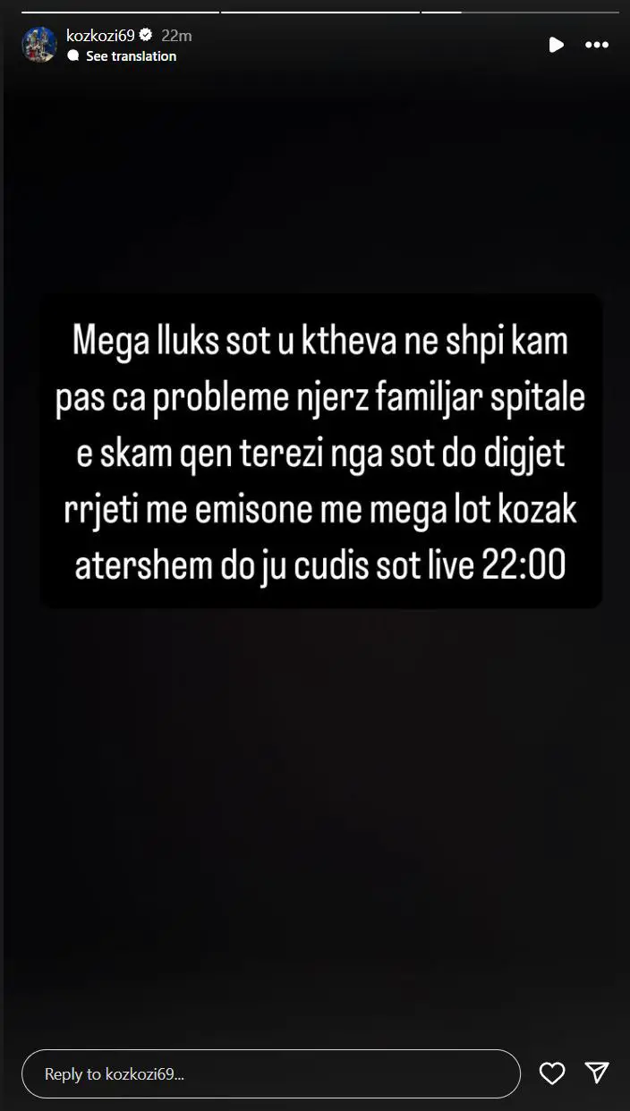 Së fundmi, vetë Kozaku ka ndarë një story në Instagram ku sqaron arsyen e kësaj tërheqjeje nga rrjetet. A