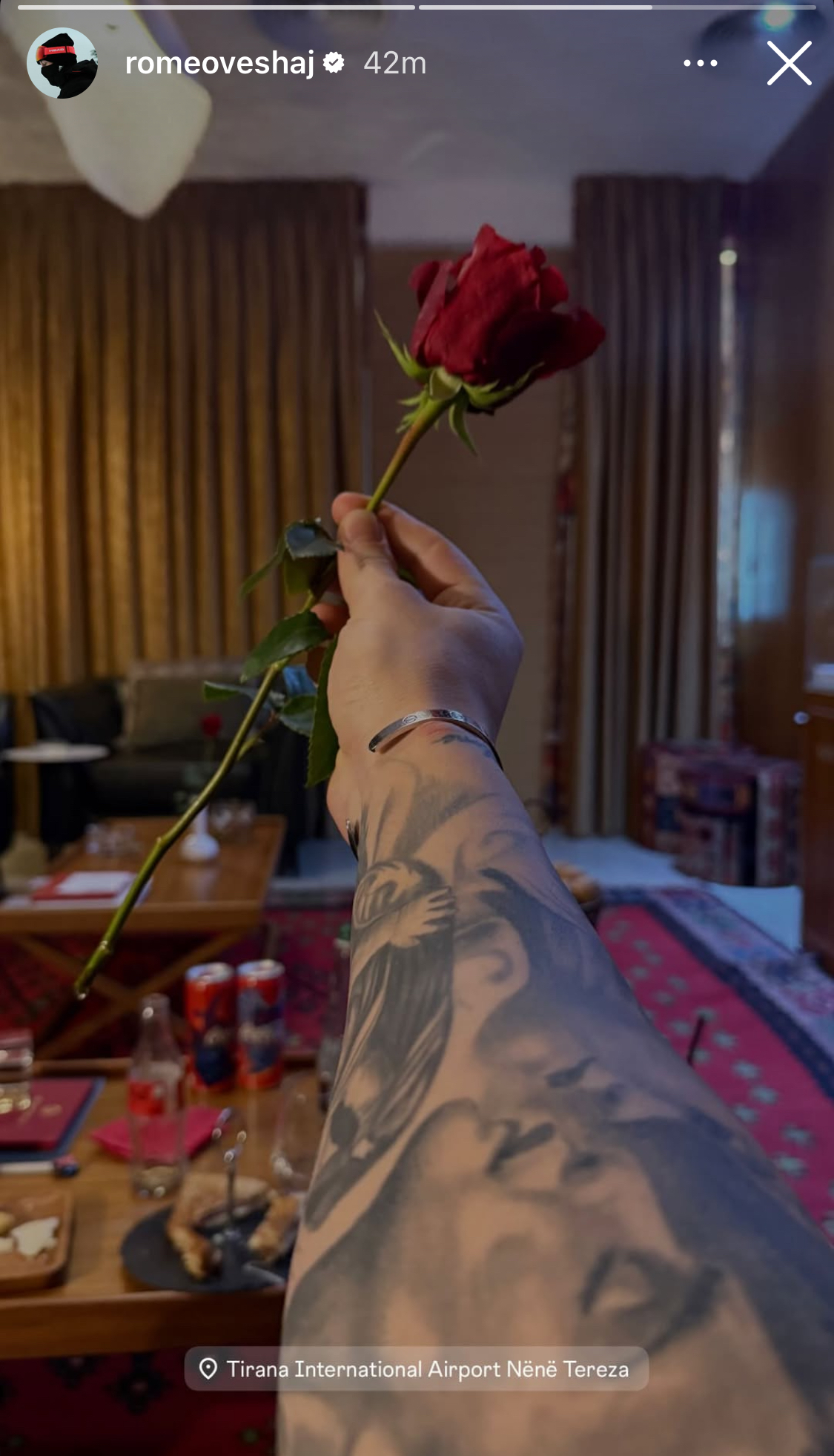Romeo për të vënë vulën e këtyre lajmeve ndanë një fotografi me trëndafil të kuq, shkruan “Kosovarja”.