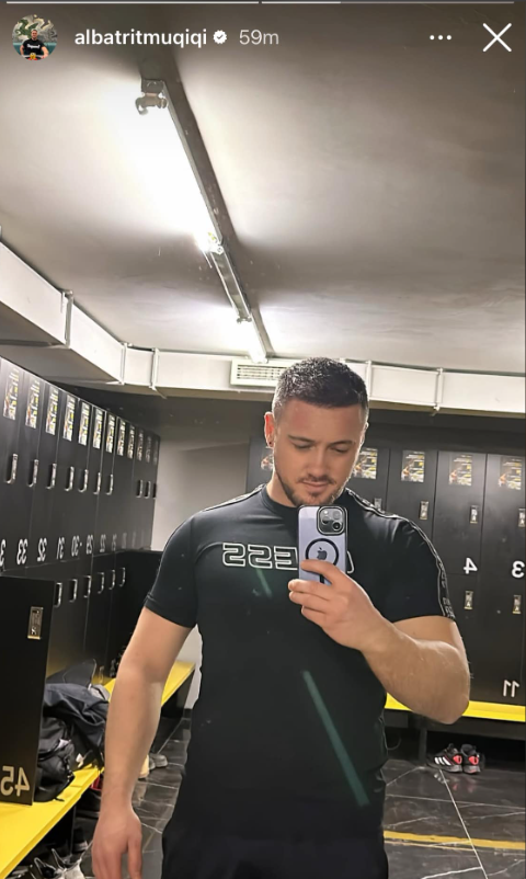Në imazhin e publikuar, ai shihet duke bërë një selfie para pasqyrës në dhomën e zhveshjes, i veshur me një bluzë të zezë, shkruan Kosovarja.