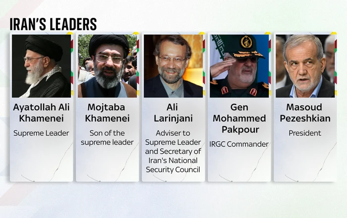 Grafiku më poshtë tregon udhëheqjen kryesore të vendit. Mediat iraniane kanë konfirmuar vdekjen e Ali Khameneit dhe Gjeneralit Mohammed Pakpour, ndërsa fati i djalit të udhëheqësit suprem nuk është i qartë.