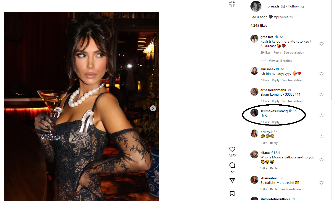 Një koment i cili mori vëmendje ishte ai i grimerës Sellma Kasumoviq, e cila vendosi t’i jap epitetin e Kim Kardashian.