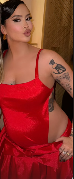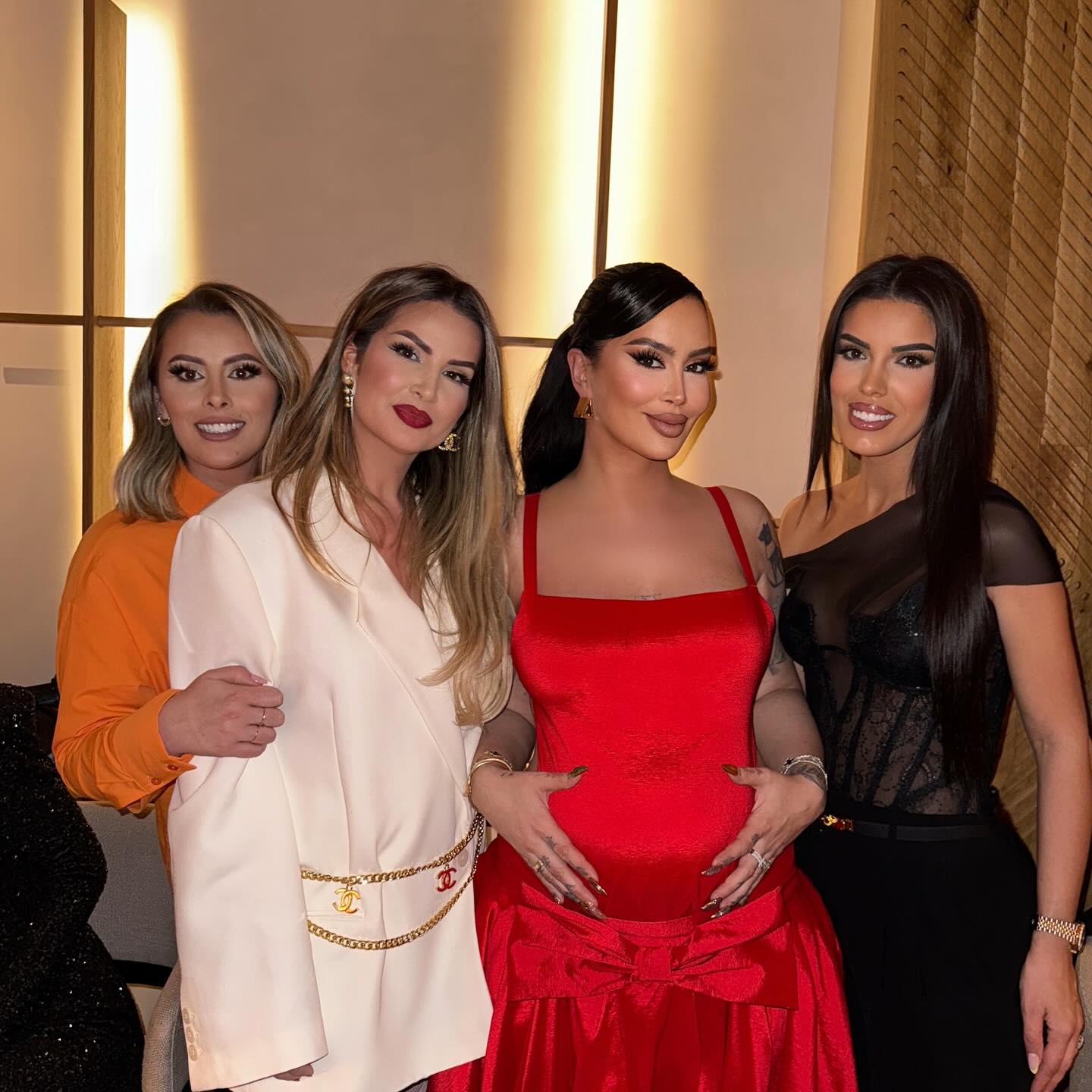 Dafina zgjodhi të vishet me një fustan të kuq me prerje që ia zbuluan një pjesë të barkut të rrumbullakësuar.