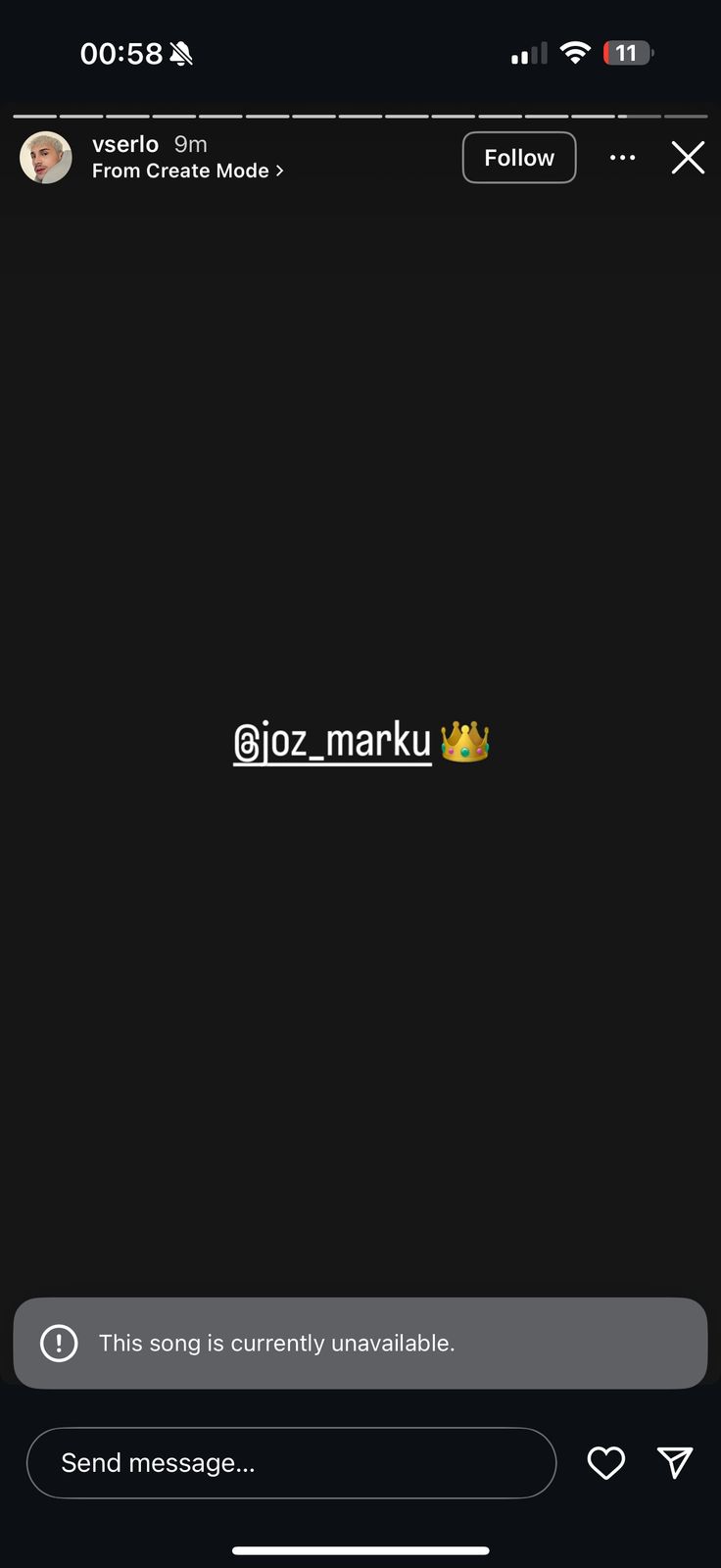 Fjala është për Vserlon i cili përmes një story i ka vënë kurorën e mbretit Jozit pas veprimit, shenjë kjo e përkrahjes.