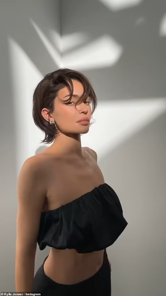 Menjëherë pas kësaj, Kylie ndau një imazh të dytë duke treguar flokët e saj të shkurta, ndërsa pozonte me një bluzë të shkurtë një fund të ngjashëm.
