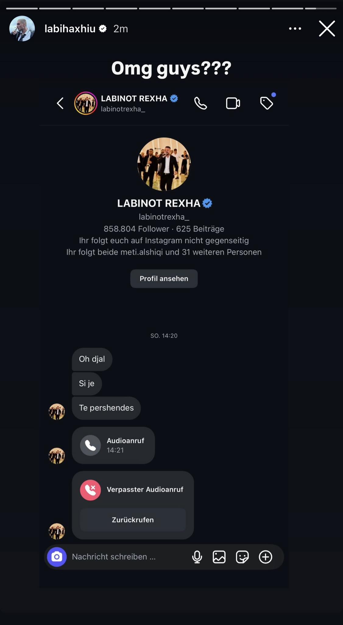 Por ajo që ka befasuar ndjekësit është reagimi i tij: ai ka vendosur t’i publikojë në Instagram si mesazhin, ashtu edhe telefonatën e bërë nga Rexha drejt tij.