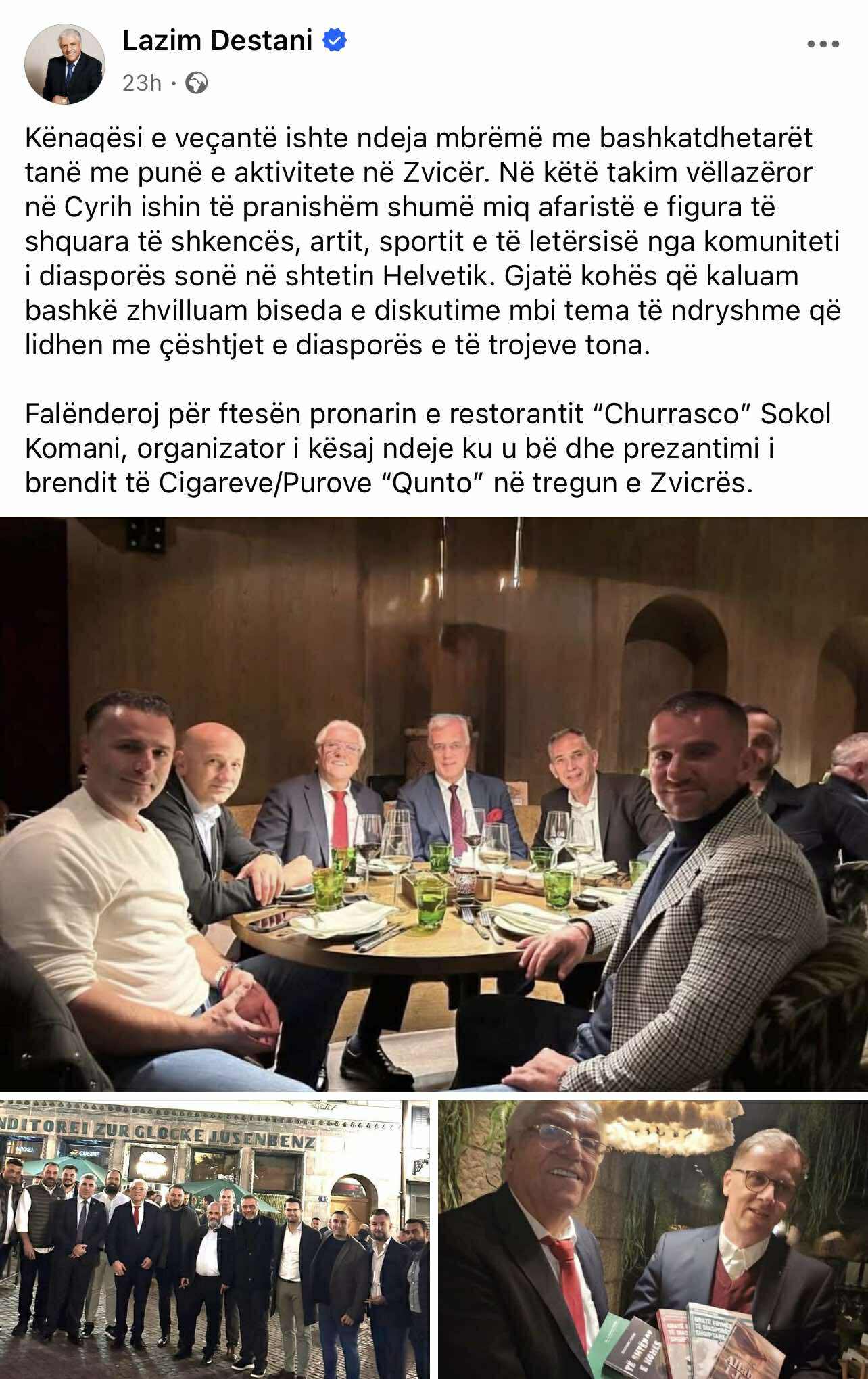Biznesmeni, intelektuali dhe filantropi i njohur shqiptar, Lazim Destani, ka marrë pjesë mbrëmë në një ndejë të ngrohtë me bashkatdhetarët në Cyrih.
