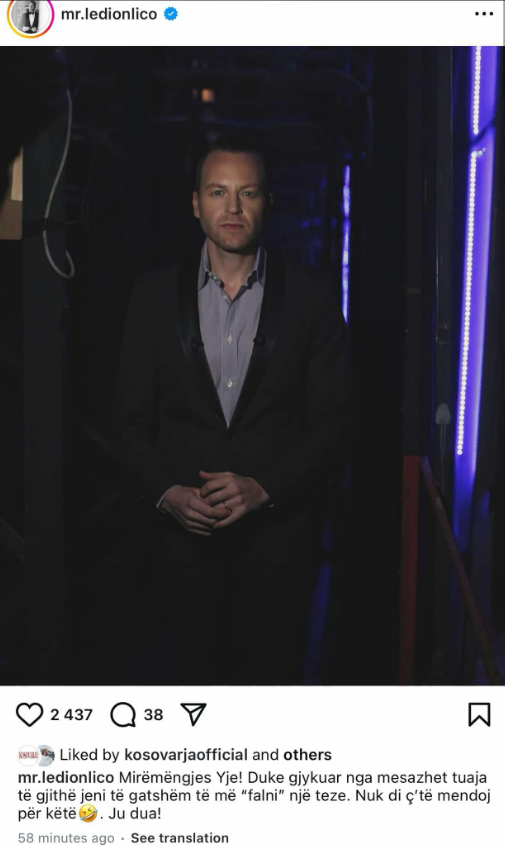 Në formë batute, opinionisti Arbër Hajdari tha se mund t’i “falte” tezen e tij, pas së cilit koment duket se kanë vërshuar edhe mesazhet në Instagramin e Liços
