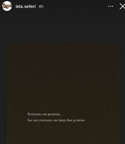 “Të gjithë mund të premtojnë, por jo të gjithë mund ta mbajnë atë premtim”, ka shkruar ajo në një sfond të errët, duke lënë pas vetes një nuancë zhgënjimi dhe qetësie njëkohësisht.