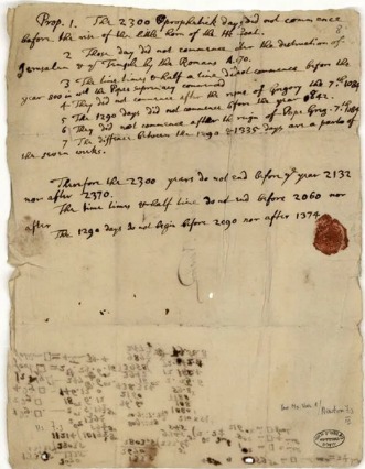 Në një parashikim tjetër ku ai përmend datën 2060, Njutoni shkroi: ‘Këtë nuk e përmend për të pohuar se kur do të jetë koha e fundit, por për t’i ndalur hamendjet e nxituara të njerëzve fantastikë që parashikojnë shpesh kohën e fundit, [dhe] duke bërë kështu për të diskredituar profecitë e shenjta aq shpesh sa parashikimet e tyre dështojnë.