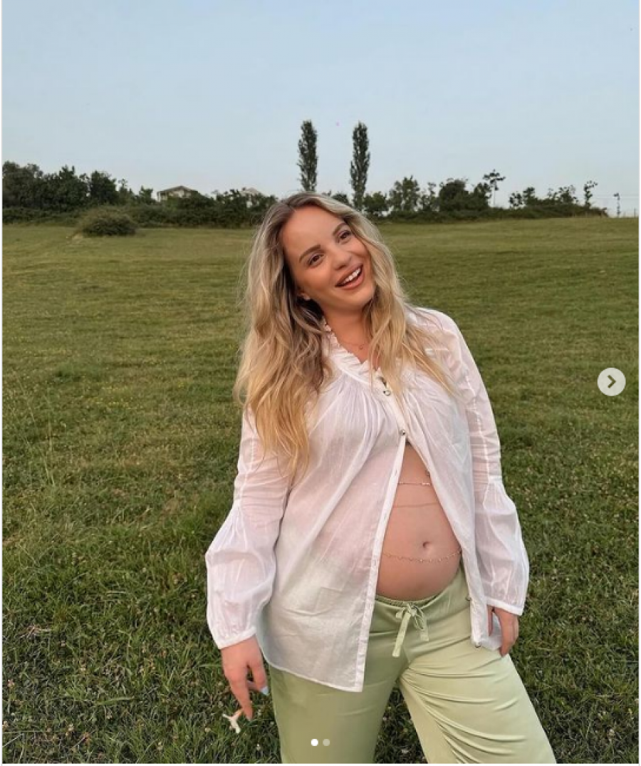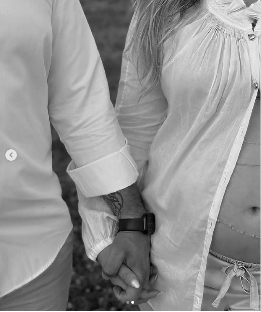 Me anë të fotove shumë të bukura, në të parën duket ajo me barkun e rrumbullakosur, ndërsa në foton e dytë është për dore me partnerin e saj.