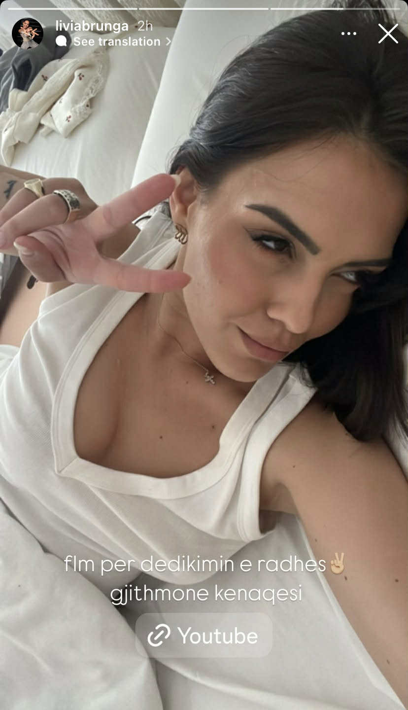 Së fundmi, pas publikimit të këngës së tij më të re me titull “Fati”, Livia ka zgjedhur të reagojë në mënyrë publike. Ajo ka postuar një foto nga shtrati, e shoqëruar me një mesazh që ka ngjallur kuriozitet dhe komente të shumta “Faleminderit për dedikimin e radhës, gjithmonë kënaqësi.”
