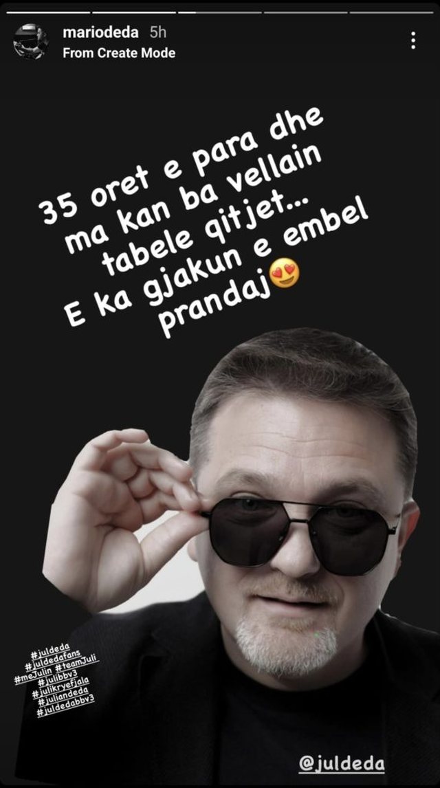 Në një postim në Instastory ai shkruan: “35 orët e para dhe ma kan ba vëllain tabele qitje…E ka gjakun e ëmbël prandaj”.