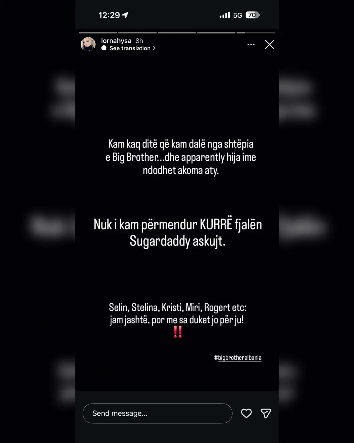 Ish-banorja e “Big Brother Albania”, Lorna, ka bërë një reagim të fortë në rrjetet sociale, disa ditë pasi ka lënë shtëpinë më të famshme në Shqipëri, duke sqaruar disa aludime dhe komente që kanë qarkulluar për të.