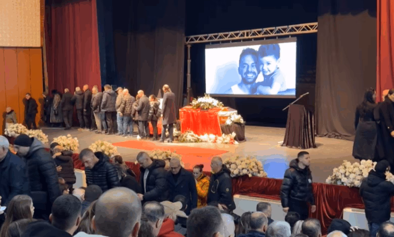 Në ceremoninë mortore, që ka filluar paraditen e sotme, shihet e pranishme edhe nëna e artistit, e cila po përqafohet dhe ngushëllohet nga të afërmit dhe të njohurit.