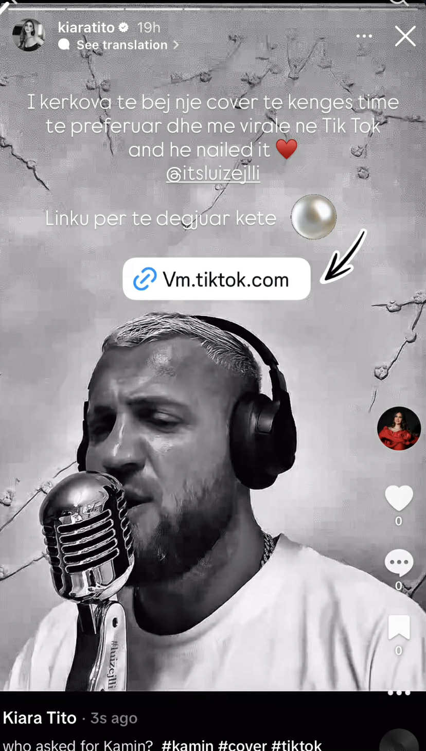 Përmes një postimi në Instagram, Kiara Tito ka zbuluar se i ka kërkuar Luizit të realizojë një cover të këngës së saj të preferuar dhe më virale në TikTok – “Kamin”, dhe ai nuk e zhgënjeu.