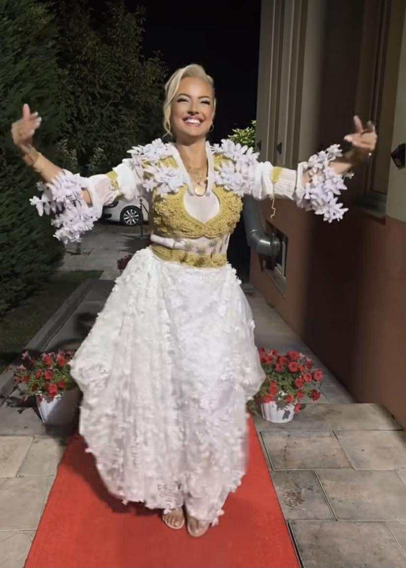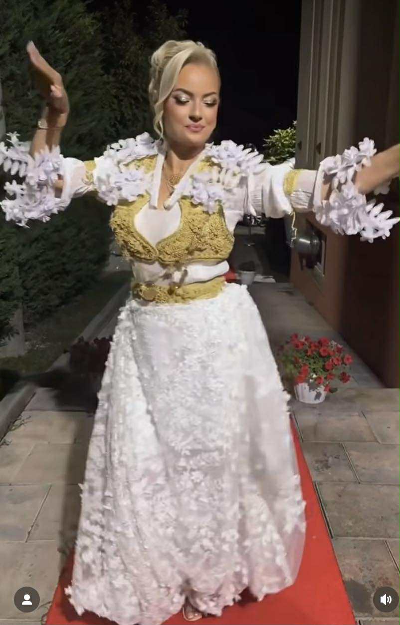 Lulja është shfaqur në veshje nuserie, ndërsa nuk ka munguar as dukati e qe shihet e mbuluar nga koka deri të këmbët.