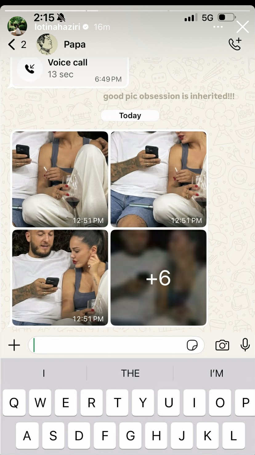 Së fundmi, Lotina ka ndarë me ndjekësit një moment të veçantë, duke zbuluar se fotot ku shfaqen ajo dhe Mozziku janë shkrepur nga babai i saj, Lutfi Haziri, shkruan “Kosovarja”.