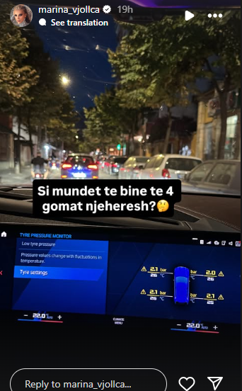 Në një postim të bërë në rrjete sociale, ajo është shfaqur e shqetësuar teksa udhëtonte me veturë gjatë natës. Gjatë rrugës, Marina është përballur me një problem të pazakontë prishjen e të katër gomave të makinës njëkohësisht, shkruan “Kosovarja”