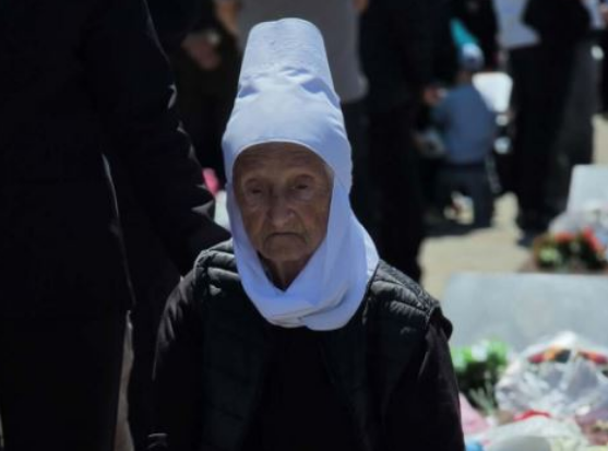Vase Tahiraj, u pa teksa qëndronte para varrit të djalit të saj të vetëm, Halil Miftar Tahiraj, një nga viktimat e kësaj masakre.