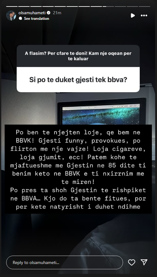 “Po pres ta shoh Gjestin te rishpiket ne BBVA .. Kjo do ta bente fitues, por per kete natyrisht i duhet ndihme”, shkroi ndër të tjerash.