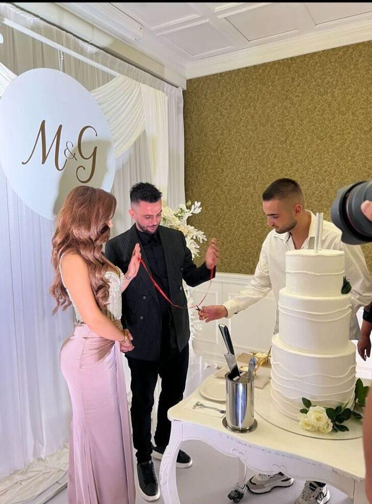 Dekori elegant, torta e bardhë dhe detajet e veçanta e bënë ceremoninë edhe më të bukur dhe të paharrueshme për çiftin.