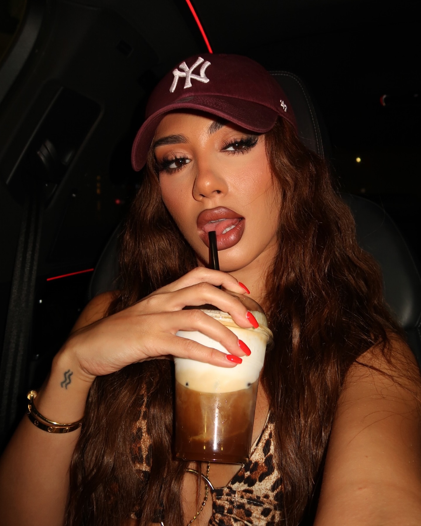 Reperja e njohur Melinda Ademi ka ndezur rrjetin me pozën e fundit provokuese, ku shfaqet në makinë duke shijuar një kafe të ftohtë.