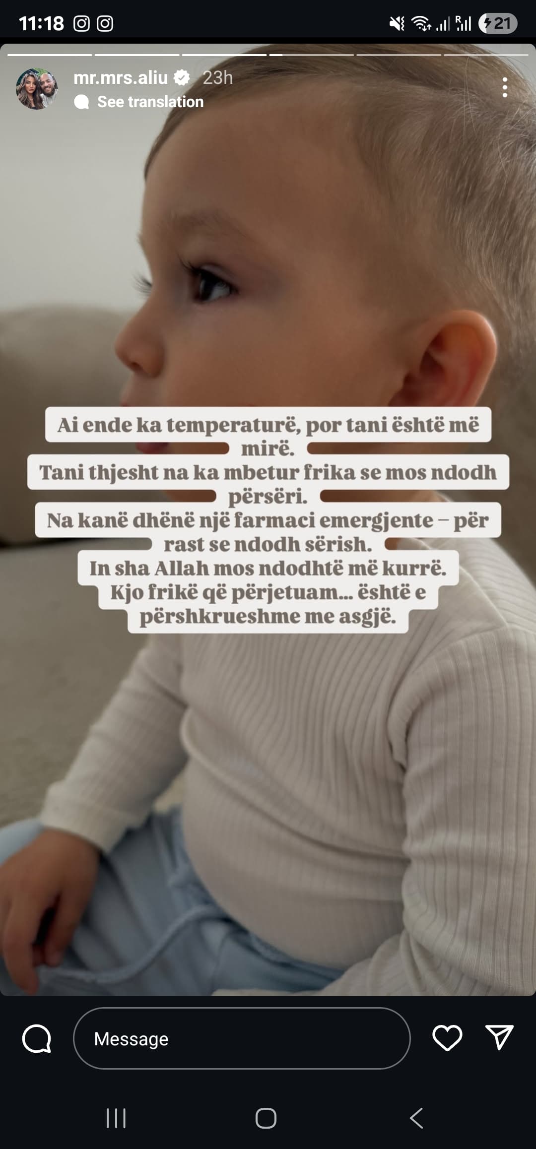Influencerja e njohur Mërgime Aliu ka ndarë me ndjekësit e saj në Instagram një nga përjetimet më traumatike të jetës së saj si nënë, teksa djali i saj i vogël Zayn është përballur me krizë febrile të rëndë, madje jo një, por dy herë brenda një nate.