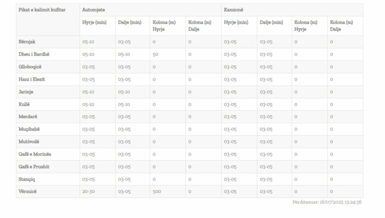 Sipas përditësimit të fundit të Qendrës Kombëtare për Menaxhim Kufitar pritjet janë deri në 10 minuta.