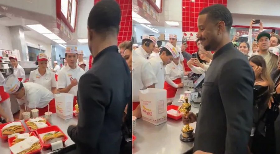 — The Art Of Dialogue (@ArtOfDialogue_) March 16, 2026Më pas, Michael B. Jordan, siç shihet në një video të publikuar në rrjete sociale, e gjeti veten në një rrjet ushqimi të shpejtë In-N-Out në Hollyëood, duke mbajtur statujën e tij të artë, ndërsa shijonte hamburgerin e tij.