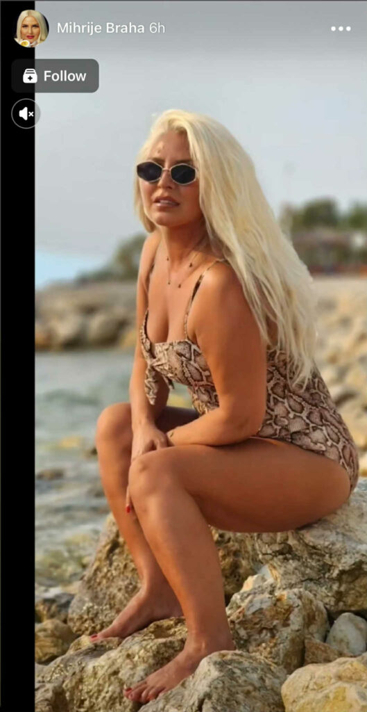 Këngëtarja e njohur shqiptare, Mihrije Braha, ka tërhequr vëmendjen e ndjekësve të saj në rrjete sociale me një foto të re të publikuar nga pushimet e saj verore.