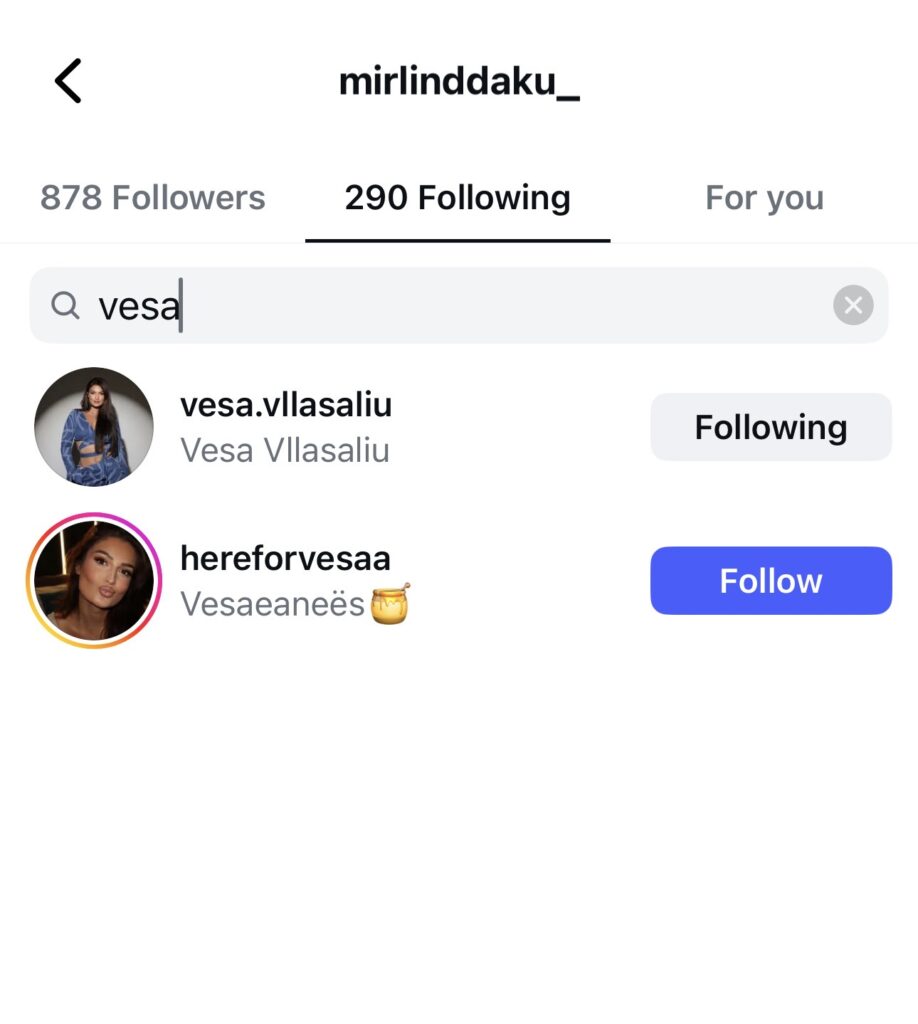 Detaji që ka tërhequr vëmendjen këtë herë është fakti se Daku, përveç se ndjek profilin zyrtar të Vesës, ka në listën e tij edhe një tjetër llogari që supozohet të jetë krijuar nga fansat e saj.