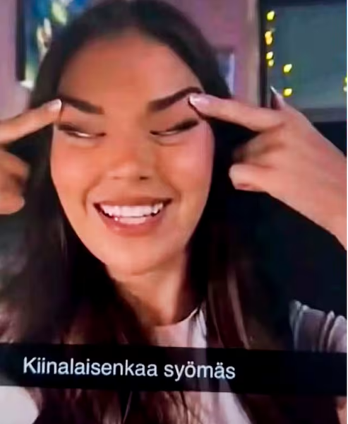 Në foto, nën imazh shkruhej në finlandisht: “kiinalaisenkaa soyomas”, që përafërsisht përkthehet si “duke ngrënë me një person kinez”.