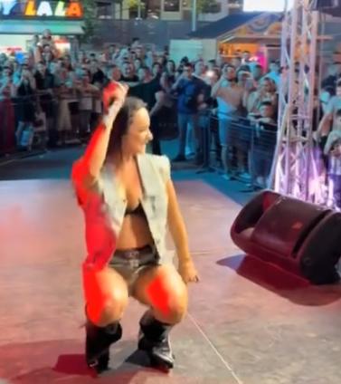 Në videon e publikuar shihet se ka veshur një minifund dhe nga lëvizjet provokuese asaj i dalin në fushë të brendshmet.
