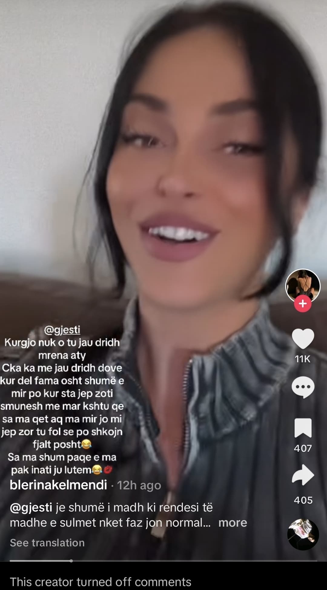 Përmes llogarisë së saj në TikTok, Blerina ka shkruar disa thumbime, teksa i ka ‘arsyetuar’ sulmet ndaj Gjestit ‘në këtë fazë’.