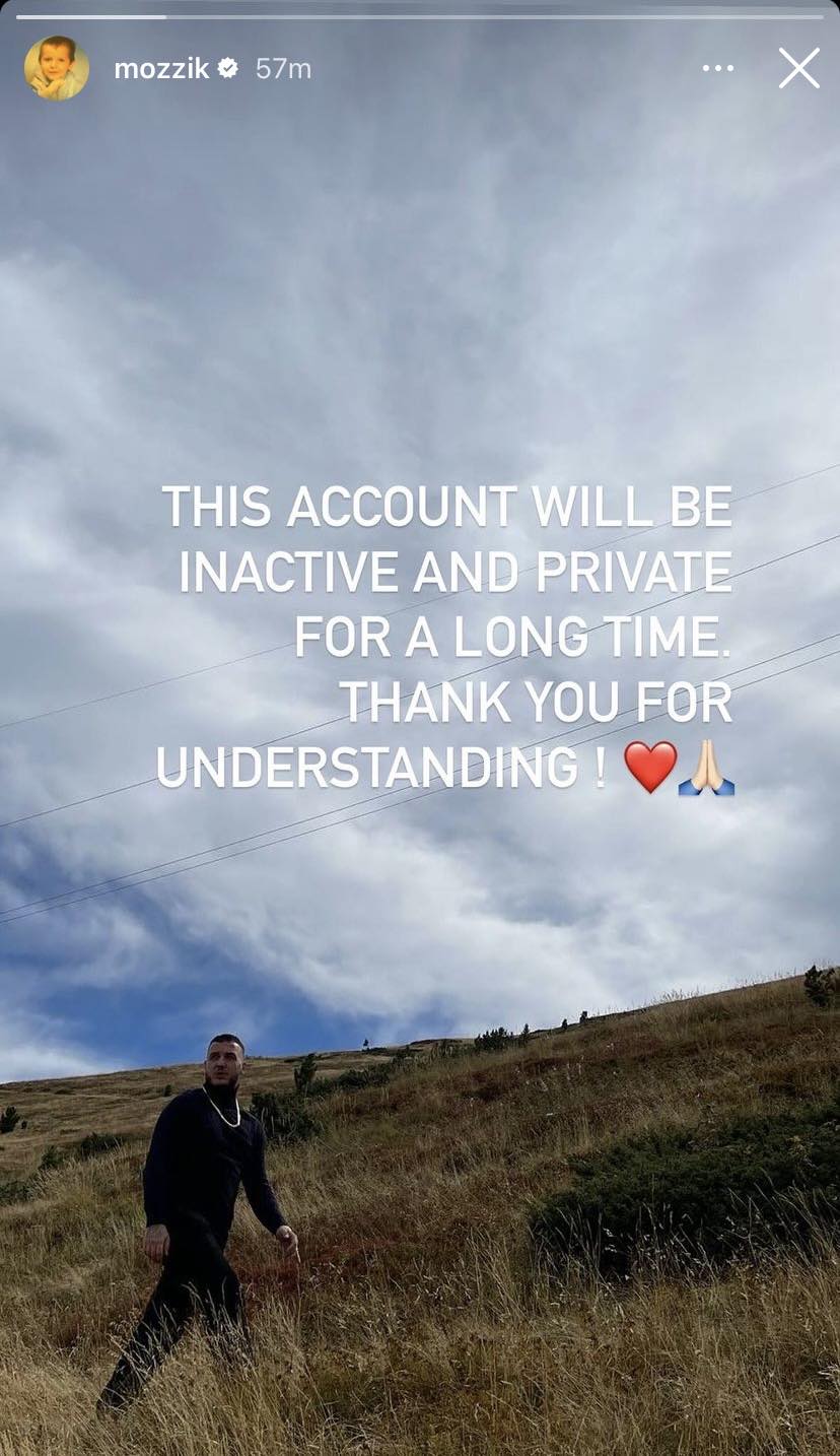 Mozzik ka treguar se do të mbyllë ‘Instagram-in’ për nje kohe të gjatë pa treguar ndonjë arsye, shkruan “Kosovarja”.