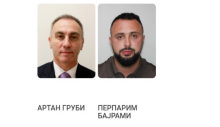 Ministria e Punëve të Brendshme ka publikuar flet arrestimin ndërkombëtar për ish-zv.kryeministrin Artan Grubi dhe ish-drejtorin e Lotarisë Shtetërore, Përparim Bajrami.
