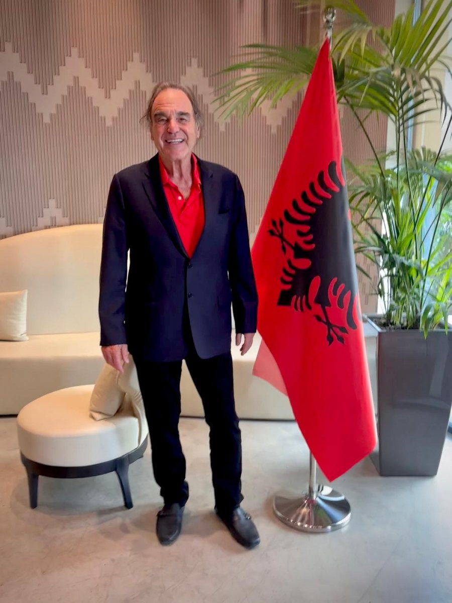 Regjisori i famshëm Amerikan, gjatë itinerarit të tij në Shqipëri u ndal edhe në Tiranë, ku vizitoi Muzeun Kombëtar “Shtëpia me Gjethe”. Gjatë kësaj ndalese, Stone u prit në takim nga Zëvendës Ministrja e Ekonomisë, Kulturës dhe Inovacionit, Lira Pipa dhe Kryetari i Qendrës Kombëtare të Kinematografisë, Eol Çashku. Pritja e një regjisori si Stone, që ka bërë historinë e kinematografisë hollivudiane dhe ndërkombëtare ishte një mundësi shumë e rëndësishme edhe për shkëmbim idesh.