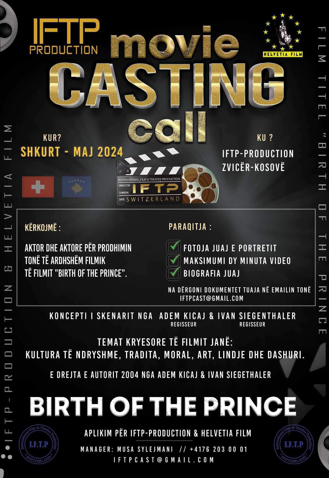 “IFTP AKADEMI”, që do të jetë në Prizrenin e bukur, simotër e Akademisë së aktrimit në Zvicër, me standarde dhe literaturë të konceptit zvicëran. Si menaxher gjeneral, ju bëjë thirrje të gjitha vajzave e djemve të interesuar të jenë pjesë e shkollës sonë dhe të lajmërohen në produksionin “IFTP”.