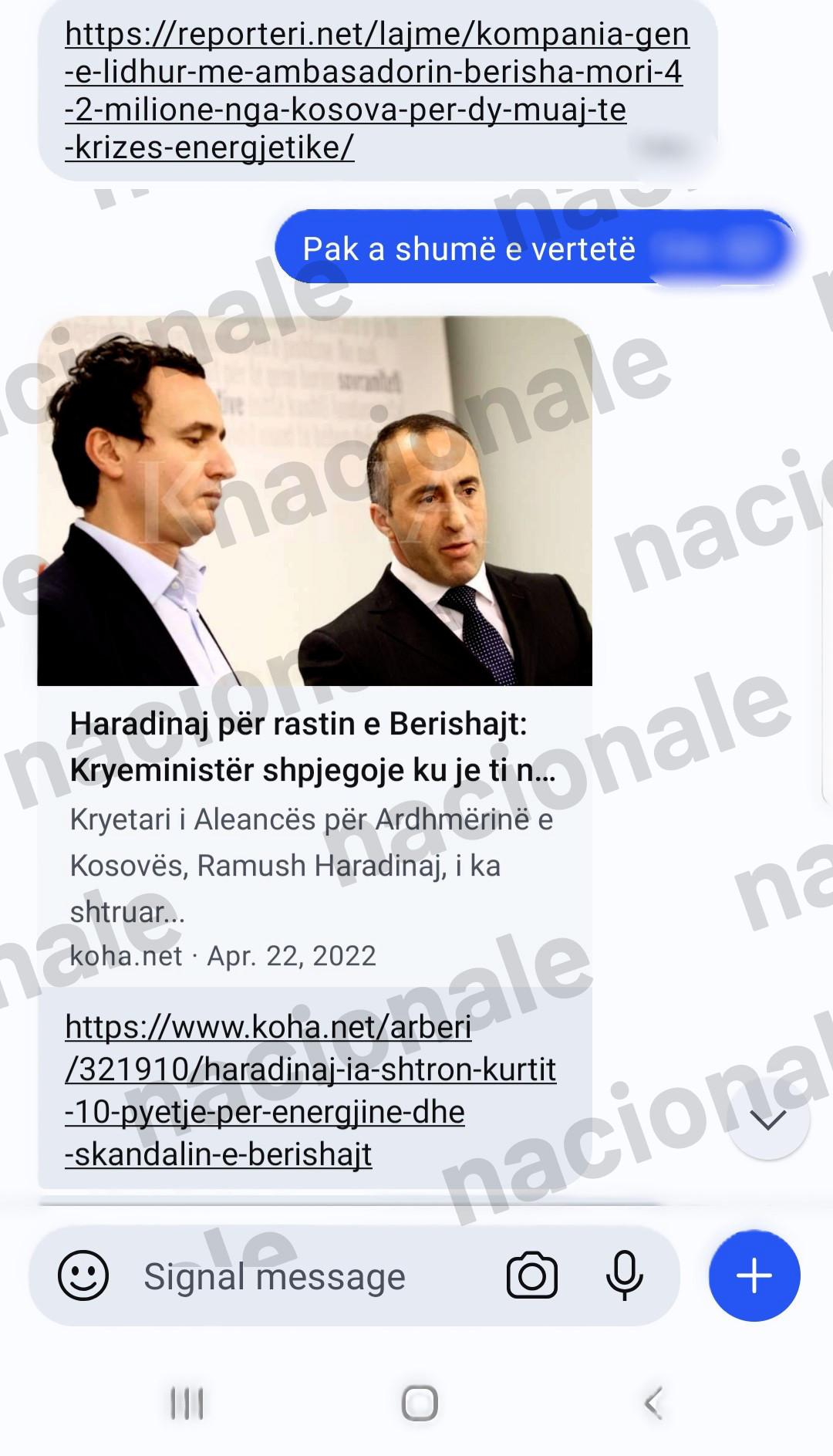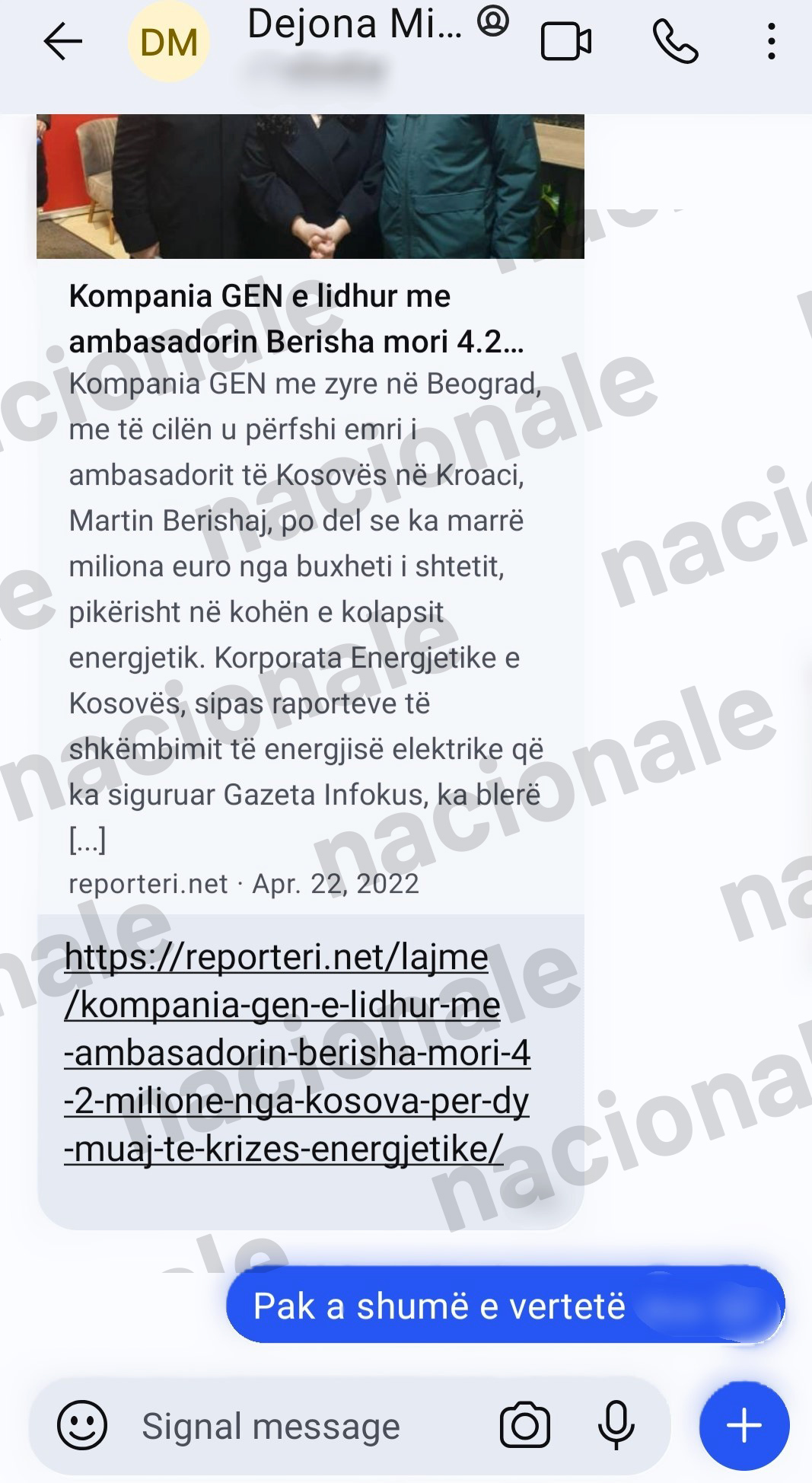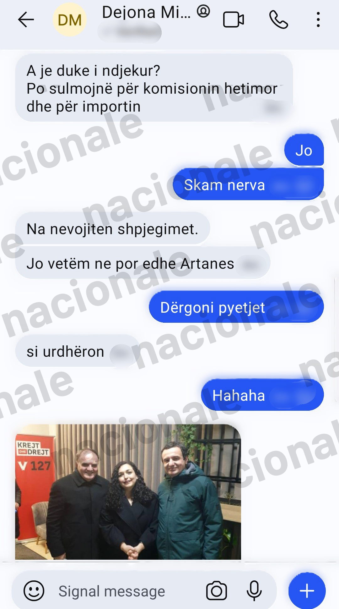 Në komunikimet që i ka siguruar portali Nacionale ndërmjet Dejona Mihalit dhe Nagip Krasniqit, del se Mihali e përcillte me vëmendje secilin raportim për këtë skandal energjetik. Ato, ia përcillte ish-kryeshefit të KEK-ut përmes platformës “Signal”.