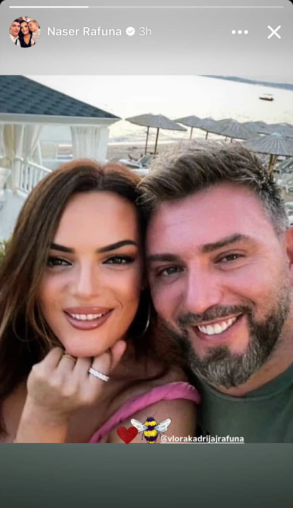 Aktori i njohur Naser Rafuna ka ndarë një moment të ëmbël me bashkëshorten e tij, Vlora Kadrija Rafuna, duke e quajtur atë me një nofkë mjaft të veçantë: “Bletë”. Në një postim të fundit në rrjetet sociale, çifti shfaqet i lumtur dhe i dashuruar, ndërsa detaji i nofkës nuk ka kaluar pa u vënë re nga fansat.