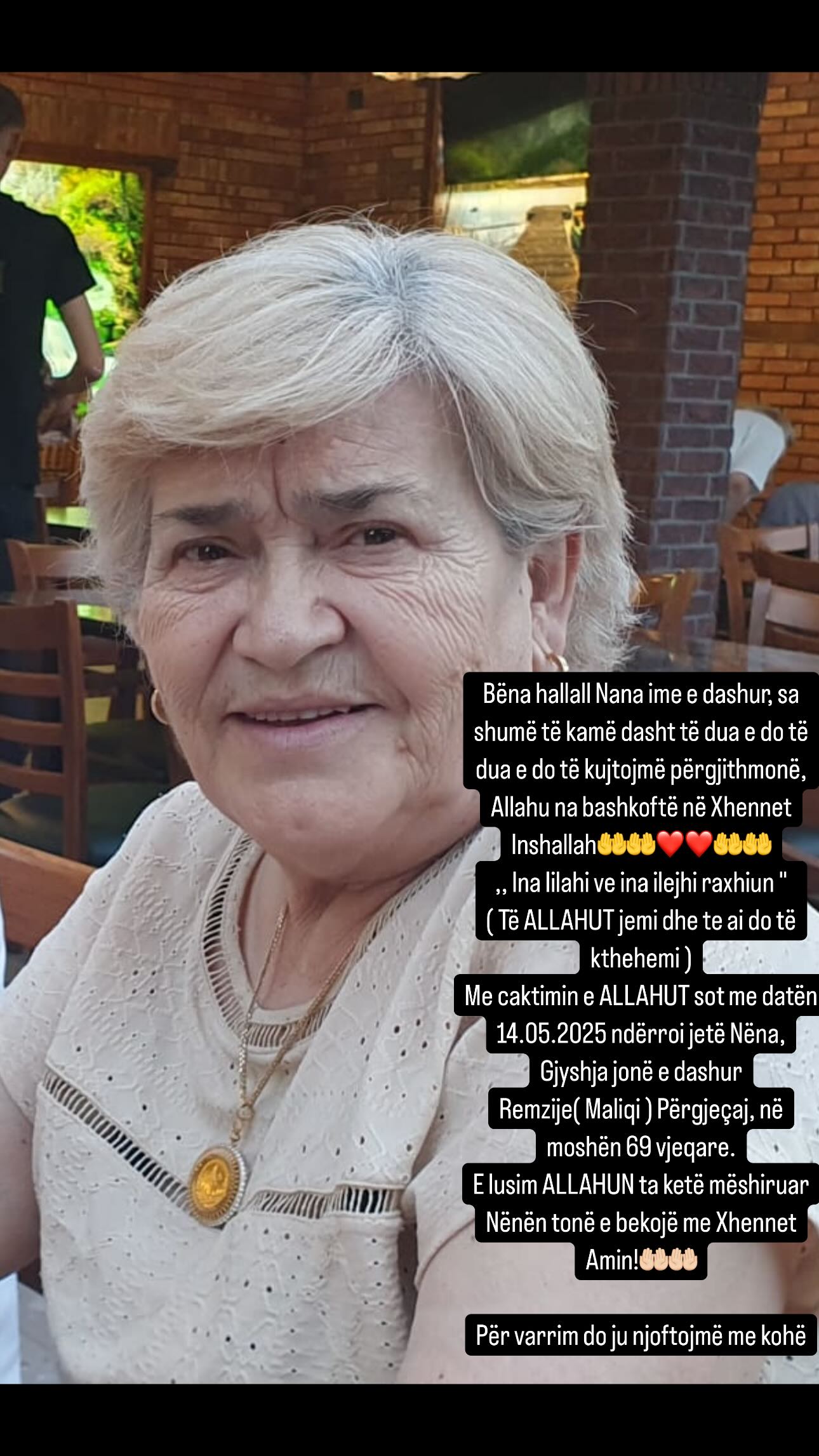 Meda ka njoftuar ndarjen nga jeta të nënës së tij të dashur. Ajo ka ndërruar jetë në moshën 69-vjeçare, duke lënë pas një boshllëk të madh në zemrat e familjarëve dhe të gjithë atyre që e kanë njohur.